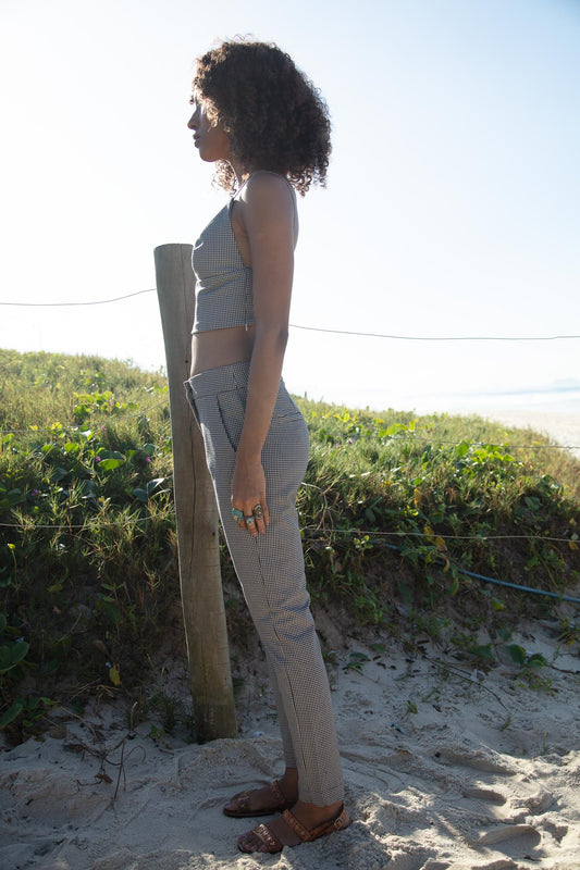 EsgotadoCalça de Linho Bordada Snake Pitanga
